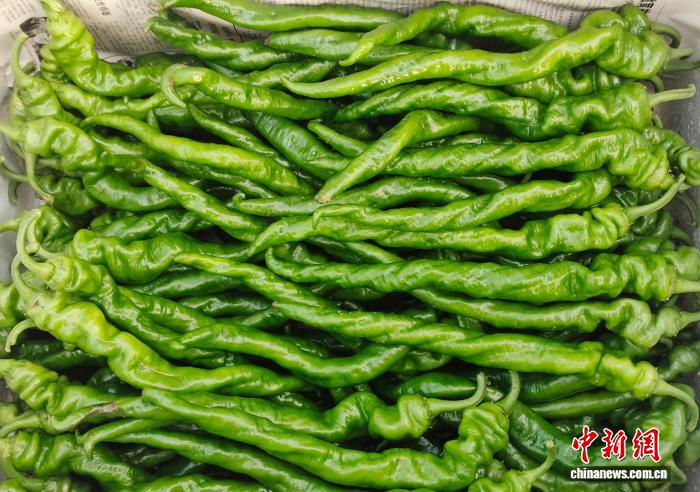 图为稀奇采戴的辣椒。记者 黄素梅 摄