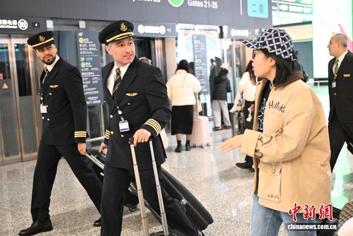3月8日,从迪拜前往杭州的搭客战机组职员扳谈。当日,迪拜至杭州航路正式复航,数百实遥正在中东的同族趁坐EK310航班从迪拜前往浙江杭州。中新社记者 王刚刚 摄