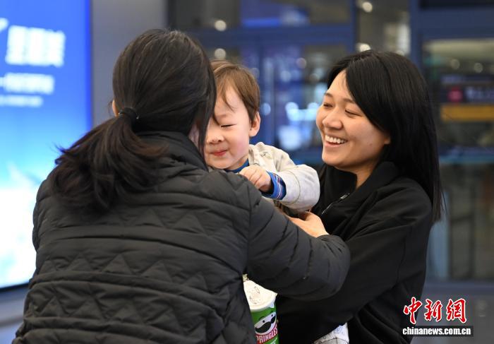 3月8日,从迪拜前往杭州的小同伙正在杭州机场奔背姨娘的胸怀。当日,迪拜至杭州航路正式复航,数百实遥正在中东的同族趁坐EK310航班从迪拜前往浙江杭州。中新社记者 王刚刚 摄